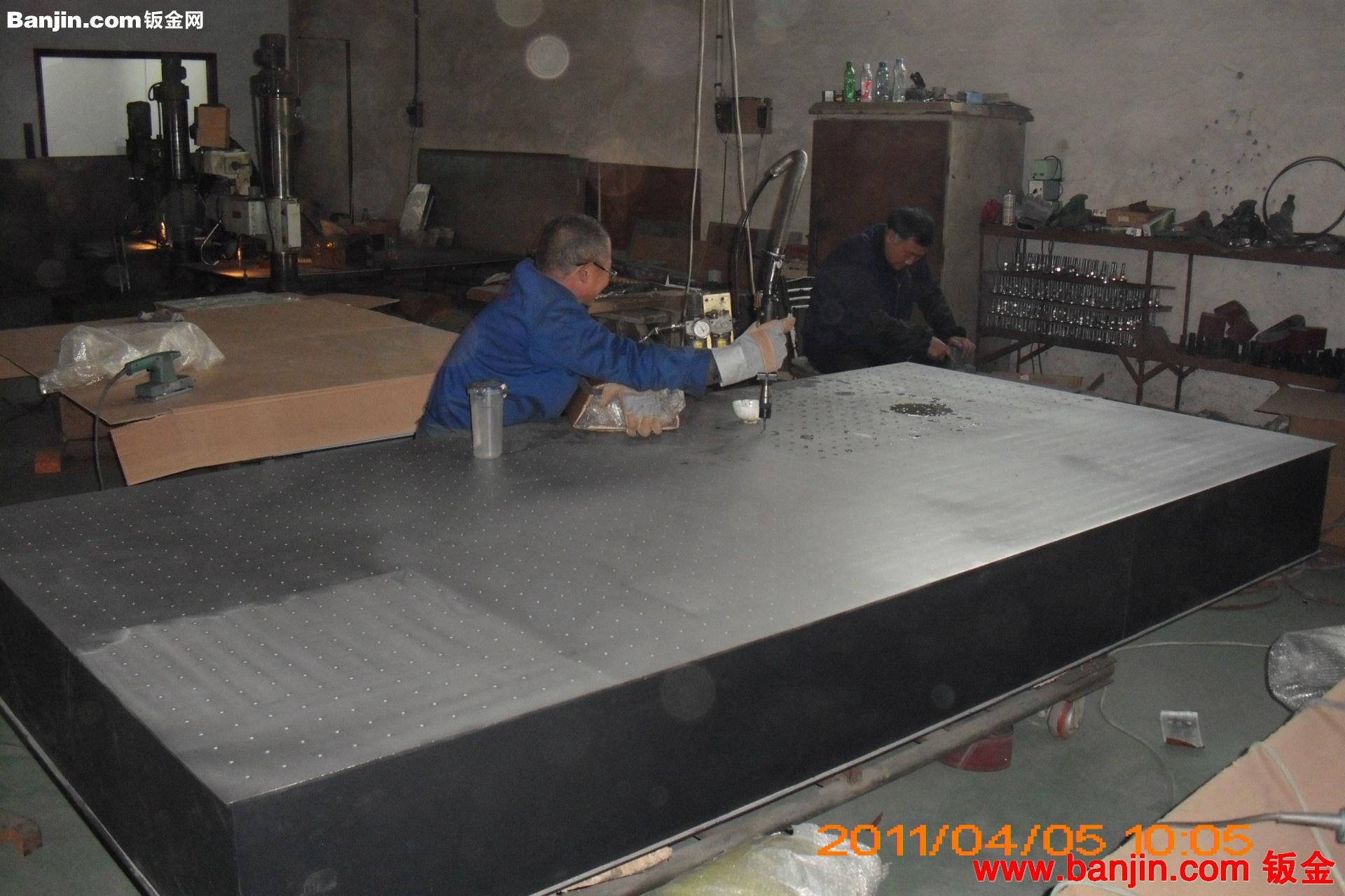 工作表面采用优质高导磁不锈钢机膜板面;粗糙度不大于0.8um,平面度不大于0.08mm/平方米,台面上的孔为铅直螺纹孔(公制M6孔,孔距为25毫米),端口为沉孔以去除毛刺,台面亚光处理。底部采用优质中碳钢蜂窝结构,隔振层面,固有频率低,隔振性能好;优质重碳隔板,性能好。表面静电喷涂:黑色外表面;